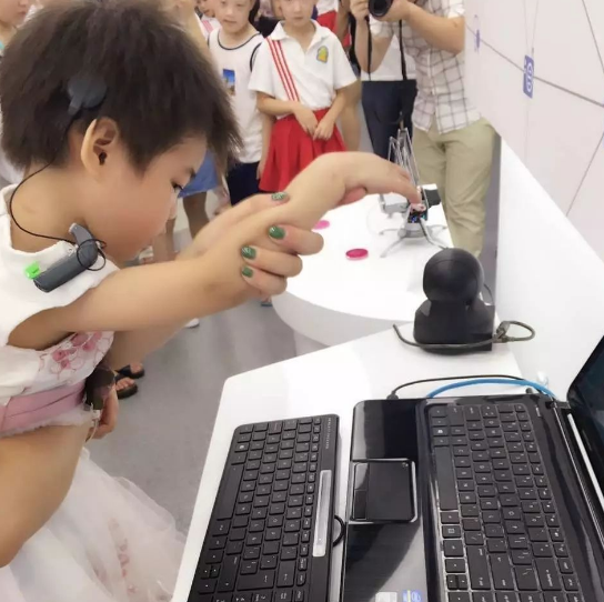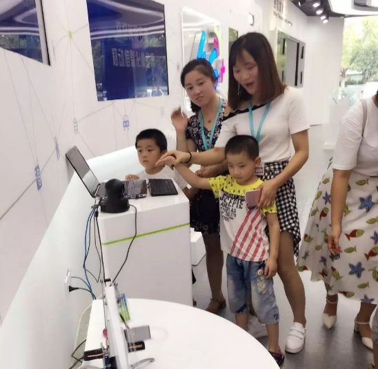 孩子们认真的听工作人员讲解中国移动从1G时代一步一步到现在的4G时代,并感受4G给人们的生活带来的便利。在工作人员的指导下,孩子们体验了4G智能生活的神奇与便利。