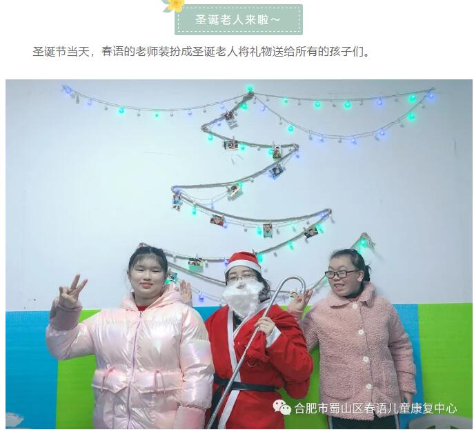 爱,不分国界!春语儿童康复中心能够顺利发展,顺利帮助孩子们进行康复,离不开来自社会各界爱心人士的支持与帮助,有了你们,我们在爱的康复之路才能走得更坚定而又义无反顾。再一次感谢合肥加拿大外籍子女学校带来的圣诞惊喜礼物,感谢你们给孩子们带来的满满的爱与温暖,你们的爱让孩子们在这个冬天格外温暖。❤️